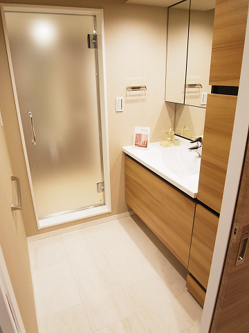 洗練されたデザインの洗面台は、収納力たっぷり。洗濯物やリネン類、日常のケア用品等を扉の中に隠せるので、常にキレイな空間をキープできますよ(o^-^o)