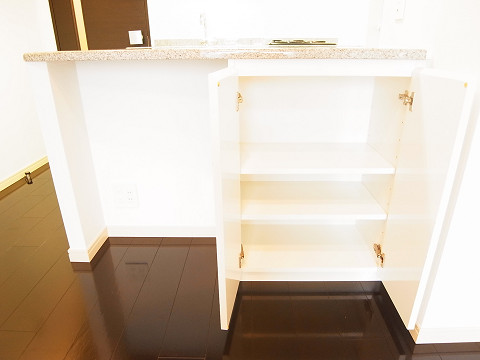 収納スペースもしっかりと確保されているので、キッチングッズなどを綺麗にしまい、限られたワークスペースを有効に使いましょう♪