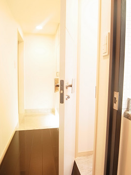 今回ご紹介するのはこちらのお部屋♪白を基調とした高級感のある玄関は、大容量のシューズボックスが付いています。仕切りが多く靴の他にも傘などをしまいやすい上、姿見が中に付いているので汚れにくいのがポイント☆