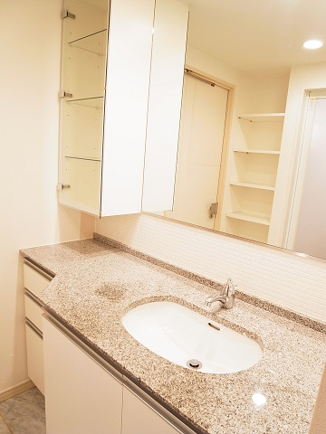 湿気のこもりやすいバスルームですが、窓付きのためそんなお悩みとも無縁ですよ♪大理石調のカウンターやフロアがアクセントになり高級感のある空間になっています。