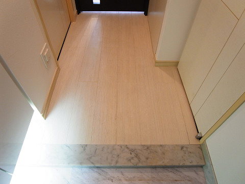 玄関は石張り。脇のニッチも手伝ってちょっとスペシャルな雰囲気です。シューズボックスはきれいに仕切られていて整理しやすそう。