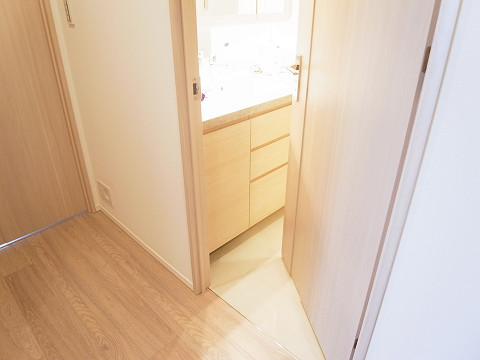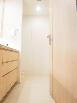 隣はサニタリールーム。ドアは内開きなので中に人がいる際はぶつからないようご注意ください☆