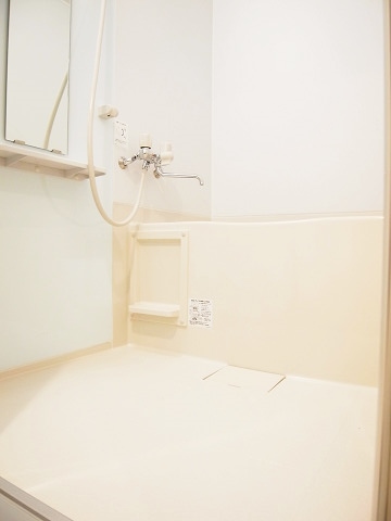 向かいの廊下には洗濯機置き場が設置されています。洗剤類は枕棚へどうぞ♬