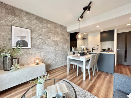 約10.2帖のリビングダイニングは、窓があるおかげか、実寸よりも広く感じられます。照明の処理などにもこだわりが表れていますね(^ ^)