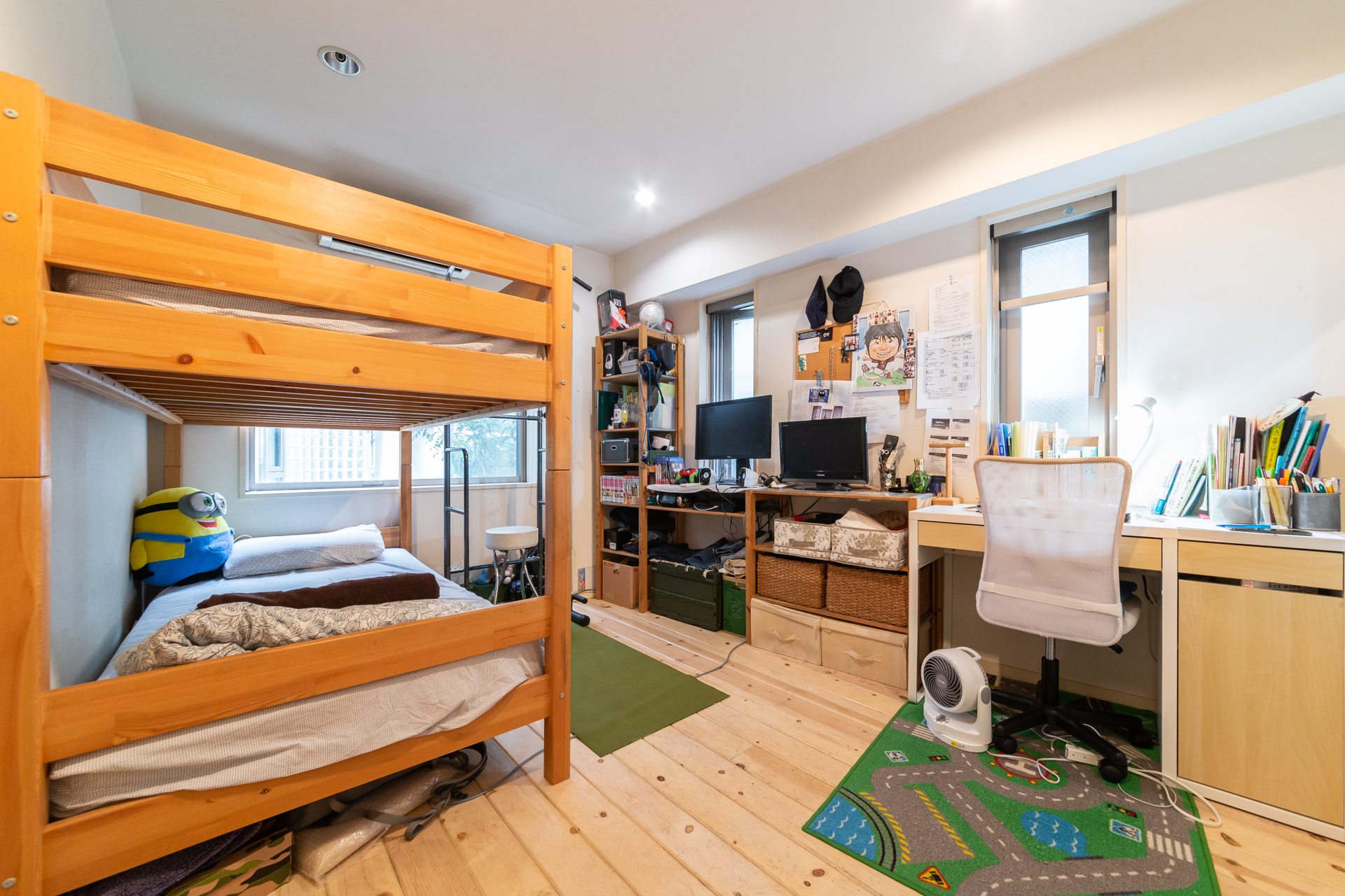 こちらは約10帖のお部屋です。ガラスブロックのおかげで採光面積が広く、まるで3方向角部屋のような感覚にとらわれます。 クローゼットも申し分ないほどたっぷり収納可能です。