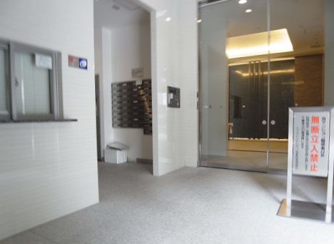 石張りのエンブレムが高級感を醸し出しています。ポストのわきには宅配ボックス。オートロックを抜けて中に入れば、オシャレなエントランスロビーが広がります♪