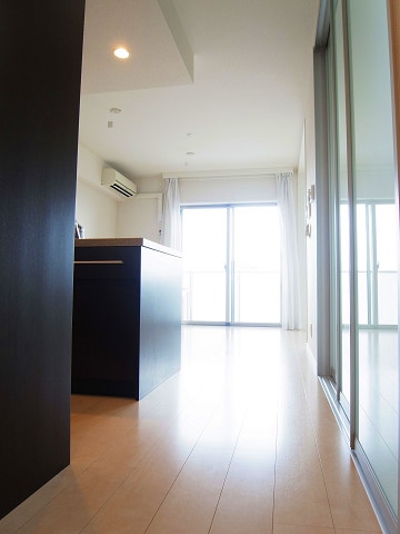 カーペット貼りのホテルライクな内廊下。ポーチが設けられ、このプライベート感は嬉しいものです。
