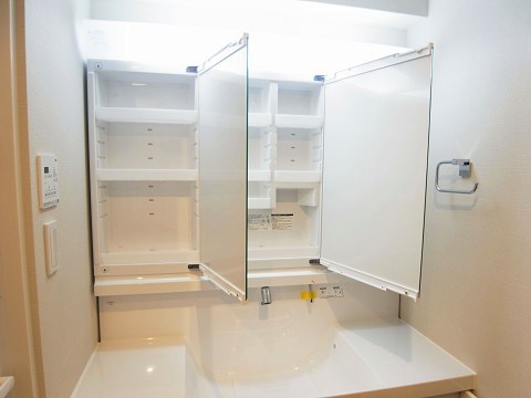 広々とした洗面台は収納力が抜群です♡無くしやすい物やヘアケア用品など、様々な物をしまっておけますね。