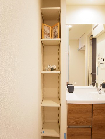 収納もしっかり備わります。アメニティグッズなどが整理整頓してしまえますね♪
