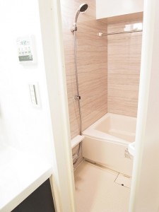 浴室の壁も薄いピンク。とっても癒されます♡浴室乾燥が付いているので雨季の洗濯も心配いりません。