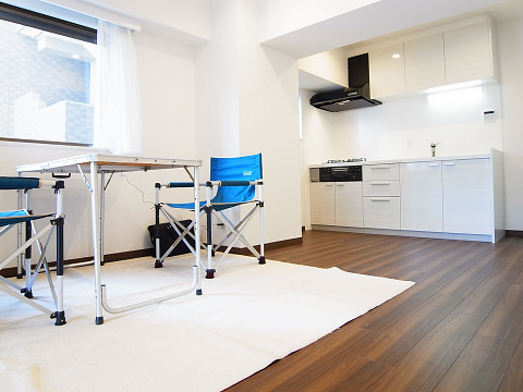 壁際のキッチンは居住空間をめいっぱい使って頂けます。