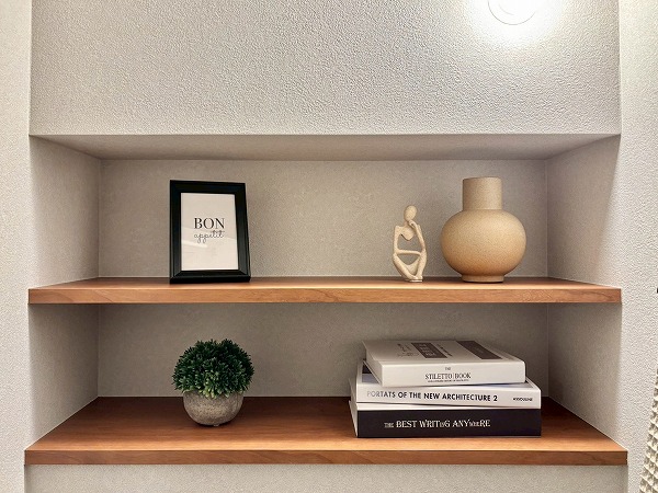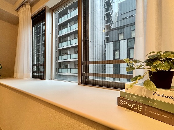 私が素敵だと感じたのは、メインルームとおよそ4.5帖の洋室の窓際に大きなカウンターがあることです。思い出のお写真やお花などを飾って、お部屋に彩りを添えてくださいね。洋室のカウンターはベッドサイドテーブルとしても使えるかも。