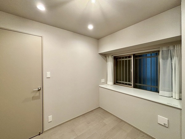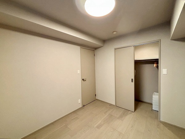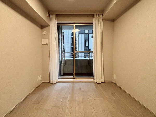 メインルームに面したおよそ5.0帖の洋室。バルコニーへ続く窓は天井近くまで高さがあり、お部屋に開放感をもたらしています。ダブルベッドを置いて、ご夫婦で使用する主寝室として使うのはいかがでしょうか。