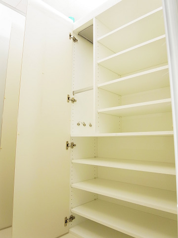 お部屋を入るとすぐに縦長の収納部があります♪収納ボックスを使ってお子様のおもちゃを入れたり、本棚にできますよ✨