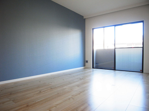 こちらは約5.5帖のお部屋。ネイビーのアクセントクロスで落ち着いた雰囲気が漂います♡