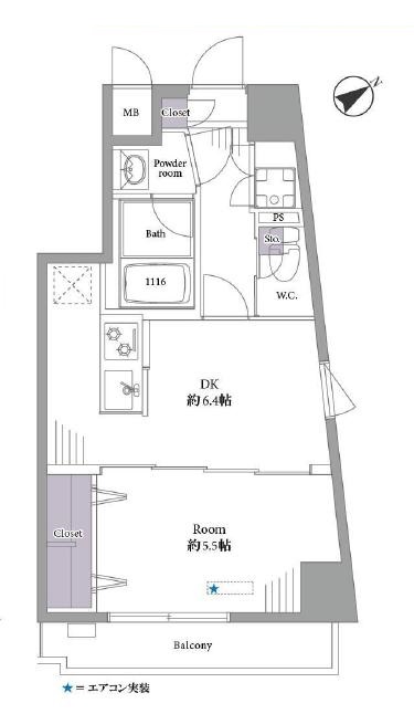 ●間取り  1DK+2Closet