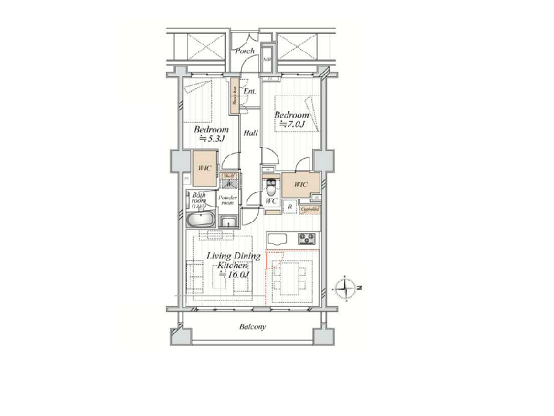 恵比寿駅から徒歩5分。レストランやショップが並ぶ都会的な通りに溶け込むように、地下1階付き地上14階建て・総戸数110戸の大規模レジデンス『ディアナコート恵比寿』は佇んでいます。商業エリアの利便性をそのまま享受しながらも、エントランスに入ると外の喧騒がふっと和らぎ、共用部には落ち着いた空気が漂う雰囲気♩ご紹介するのは、8階部分に位置する2025年リノベーション済みのお部屋。玄関を開けるとまっすぐ伸びる廊下が奥まで視線を導き、その先で約16帖の開放的なLDKが迎えてくれます。東向きの大きな窓からは朝の光がやわらかく差し込み、ダイニングからキッチンまで明るさが心地よく広がる空間です。洋室と水まわりは廊下側に独立して配置されており、生活動線が整っているのも好印象。来客時もプライベート部分を見せずに案内できるメリハリのあるつくりです。さらに、建具を追加すれば2LDKから3LDKへと変更可能。ライフステージに合わせて柔軟に“育てていける住まい”です。コンパクトさを感じさせない無駄のないレイアウトで、67㎡超の空間をより広く感じられますよ。また、トランクルームが使用料無償で利用できるのも大きな魅力。季節家電や趣味の道具の保管に重宝し、室内に余白をつくってくれます◎恵比寿の利便性と、住まいとしての落ち着きをバランスよく両立した一室を是非現地にてご確認くださいね✦ ライター:mao【25L04】