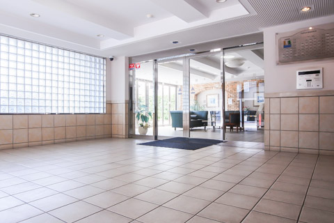 エントランスのオートロックを抜けると、ゆったりとした広さのロビーがありました。待ち合わせにも便利。