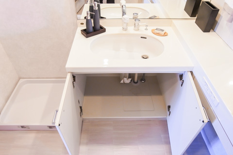 サニタリールームはかなり広く、首脳力も豊富。化粧台までありますね。