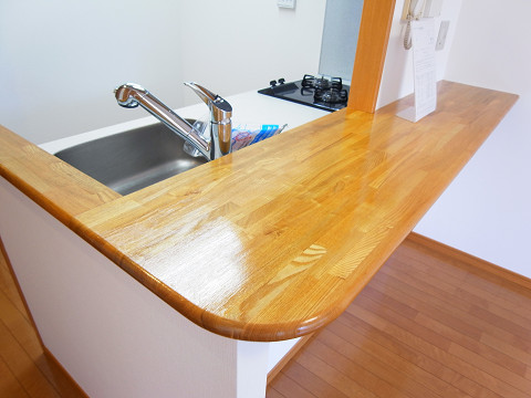 広いカウンター部分は、料理の配膳や後片付けにも役立ちます☆カウンター下には収納家具を設けられそうです♪
