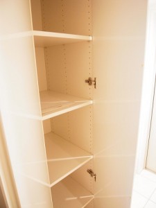 廊下の右側一面はストレージになっています。ポール付きでコートなどを仕舞えるタイプと、仕切り付きのタイプがあります。
