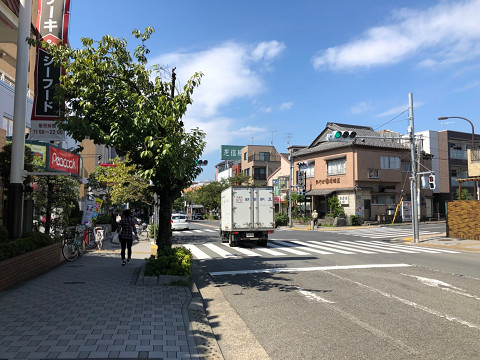 おしゃれな外観のパン屋さんやお菓子屋さんが並んでいます。歩道も広く、安全性も高いですね♡
