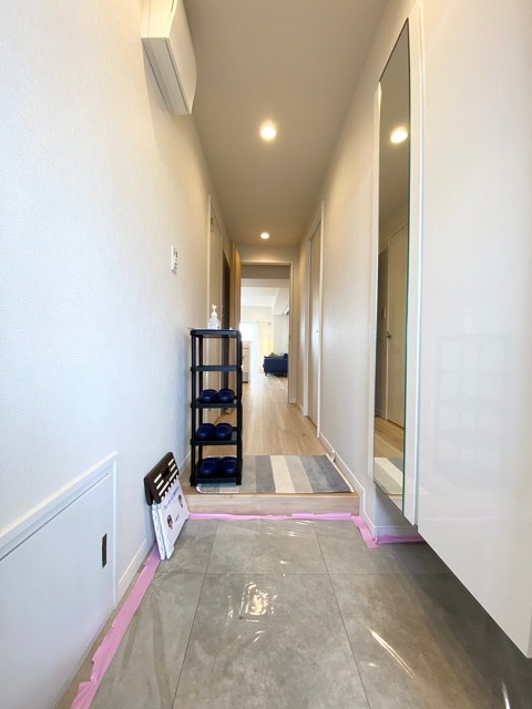 玄関の右手にトールサイズのシューズボックスを完備。ご家族分の靴をしまえる大容量です✿姿見が付いているので、外出前にコーディネートをチェックできますよ(*^^*)