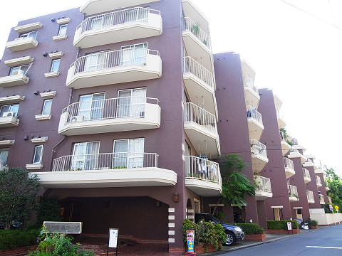 藤和駒場コープはブラウンの塗装に白のバルコニーが映える低層マンションです。どの住戸も同じ方角から光を感じる事が出来る段差の付いたファサードが特徴的☆