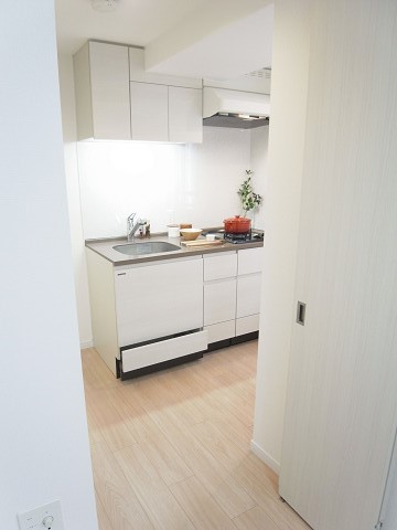キッチンには、収納箇所がしっかり設けられているので増えがちな器具や調味料をきちんとしまっておけますよ。