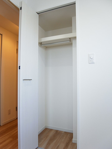 スリムなクローゼットが完備。奥行きを活用して、ラックやつっぱり棒を使えば、見た目以上の収納力を発揮できそうです☆