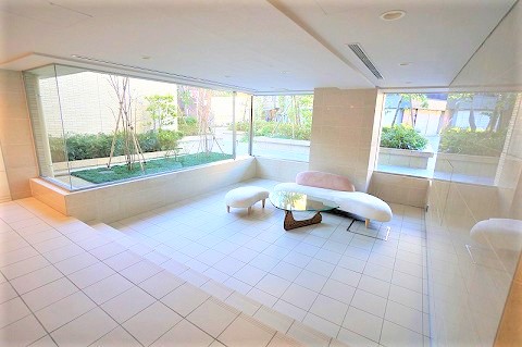 エントランス内もとっても綺麗✨大きなフィックス窓のおかげで開放感があり、沢山の光を取り込むので明るい印象。待ち合わせや雑談時に使えるソファもありますよ♪