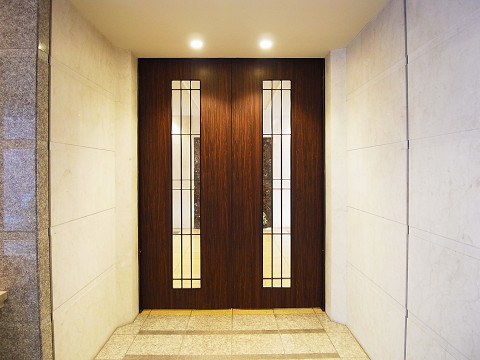 重厚感のある自動ドアの先には、上質な高級感あふれるエントランスホールが広がります。その先にはオートロックのエントランスも完備され、24時間有人管理の安心感も魅力ですね♩