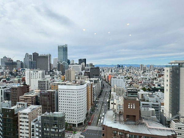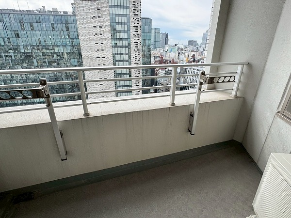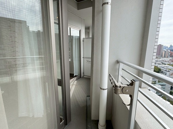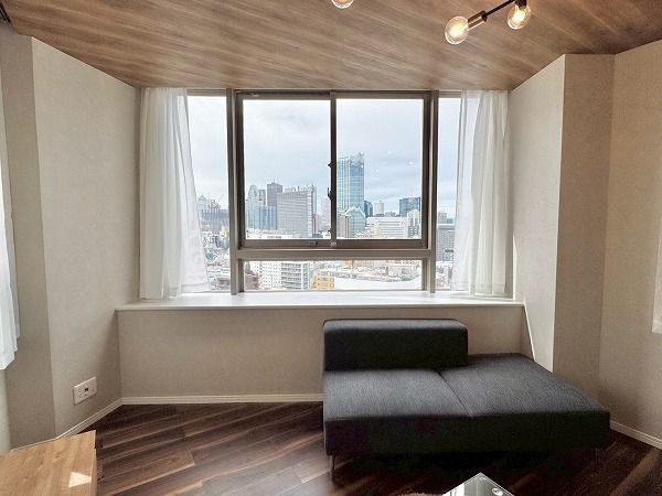 ベランダからは新宿を一望できます!お部屋が24階にあるため目の前に建物がなく、スッキリと開けた眺望です。天気のいい日は遠くまで見渡せ、夜は夜景が綺麗そうでした。メインルームのコーナー窓からも同様に良い景色を楽しめますよ。