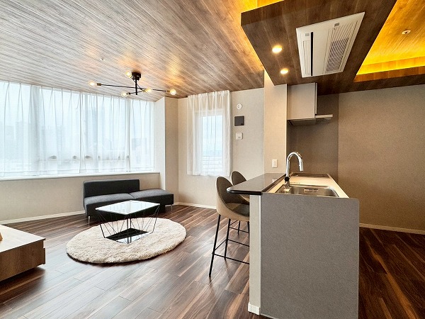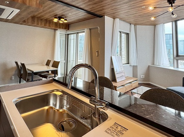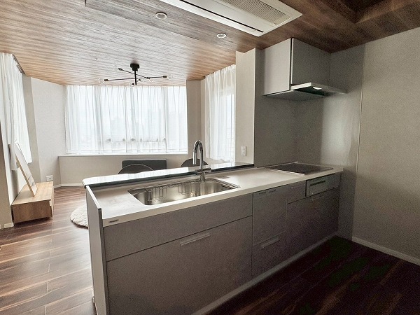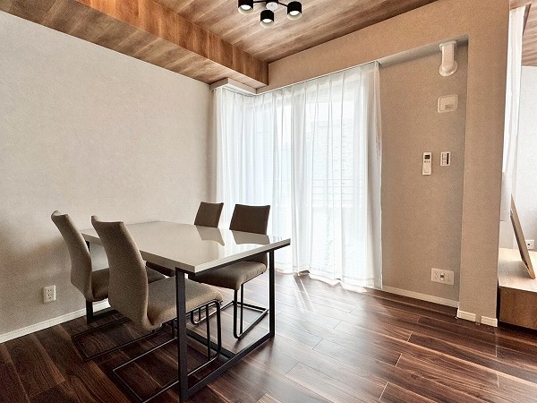今回ご紹介するお部屋は、オール電化仕様の3LDK。オール電化は火を使わないため、安全性に優れています。フルリノベーションが2025年9月に完了したばかりで綺麗で洗練された印象でした。ダークブラウンで統一されたフローリングで重厚感が漂います。