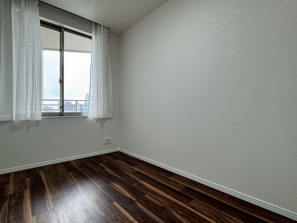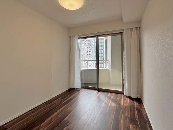 洋室は約6.1帖とう約5.3帖の.2部屋にウォークインクローゼットが付いていて、たくさんの洋服の収納が可能となっております。窓はいずれも新宿の街並の見える位置にあり、眺めが良いのがポイント。南西向きで明るい印象でした。