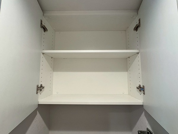 キッチンには大容量の食器棚が。お洒落な食器を集めてる方には嬉しいですね。様々な食器と共に生活を彩ってみてはいかがでしょうか。また、食器棚の上に物を置く事ができるため、カフェスペース作るのも良さそうです。