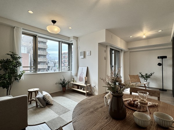 目黒駅より徒歩8分、利便性の高い山手通り沿いに佇む『ザ・マジェスティコート目黒』。今回の舞台は7階にある2LDKです。メインルームは約18.3帖とかなりゆったりとしたスペースが確保され、バルコニーに面した大きな窓と、コーナーウィンドウが設けられ解放的で清々しい印象の空間となっています。2つある洋室はいずれも5帖以上とバランスの良い間取りで、家族構成やライフスタイルにあわせて多様な活用の仕方が出来そうです。2025年10月にリノベーションが施されたばかりで室内はまるで新築のように綺麗な状態でした。ホワイトの壁&明るいトーンのフローリングに、建具や水回りの設備にはダークブラウンが取り入れられ、全体的に統一感がある落ち着いた雰囲気の内装デザインに仕上がっています。ペットを2匹まで飼育可能なのもオススメしたいポイント。新生活をスタートするのにふさわしい一室です。ぜひ一度内見してみてくださいね。 ライター:kayo【25K06】