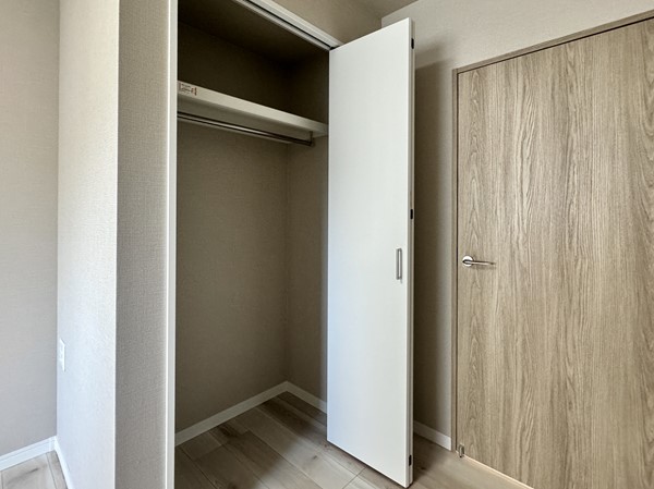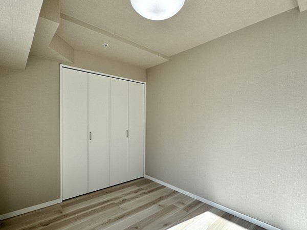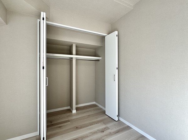 洋室はそれぞれ5帖以上の広さが確保され、いずれも大きいベッドを設置することができるバランスの良い間取りです。どちらのお部屋にもクローゼットが設けられており、家族のプライベートルームに最適ですね。