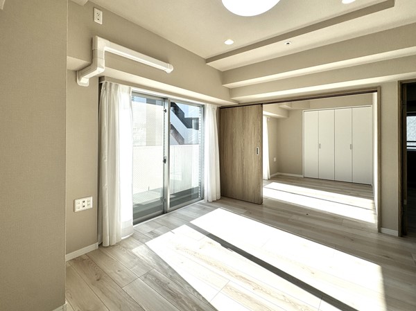 単身からファミリー世帯まで、幅広い層にオススメの2LDK。フルリノベーションが施され、まるで新築のような感覚でお住まいいただけそうですね。全面に明るいグレージュのクロスが取り入れられたナチュラルモダンな内装が素敵です◎