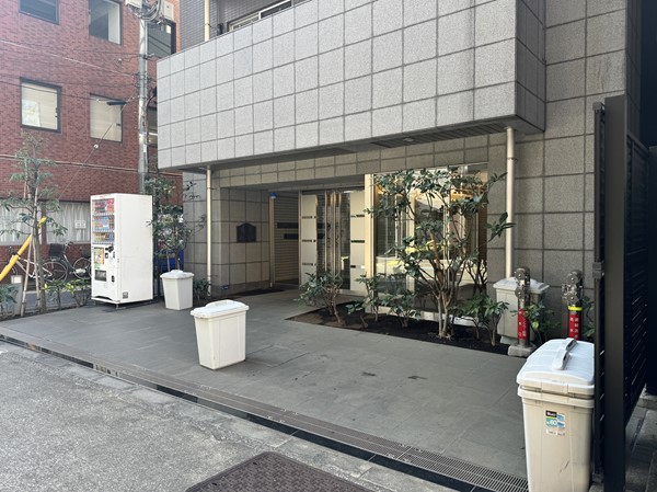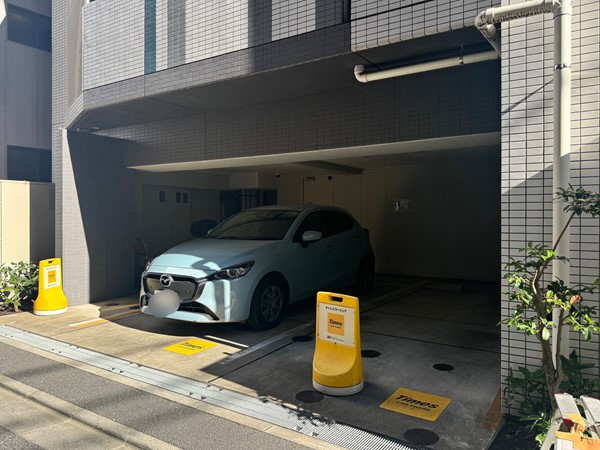 エントランスに向かって左手に回ってみると駐輪場がありました。更に裏手に回るとゴミ捨て場や駐車場、バイク置き場が完備されています。きちんと整頓され、管理体制の良さが伺えました。