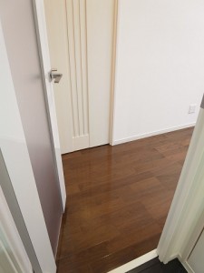 廊下突き当りの扉からリビングダイニングキッチンへ繋がります。入ってすぐ正面の扉を開けると・・・