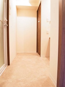 扉を開けると雰囲気は一変。長くのびるタイル貼りの玄関から感じるのは高いデザイン性。スペースを贅沢に使ったゆとりある2LDKのお部屋です(*´∀`*)