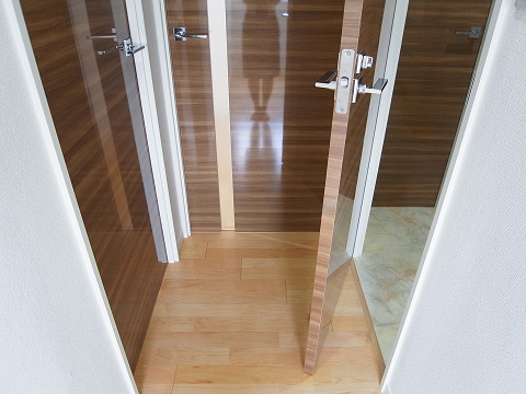 サニタリールーム内の各スペースは、扉で仕切られています(*´艸`*)開け閉めが面倒ですが、プライベートに配慮した仕様になっているので、お客様も使いやすいかも知れませんね♪