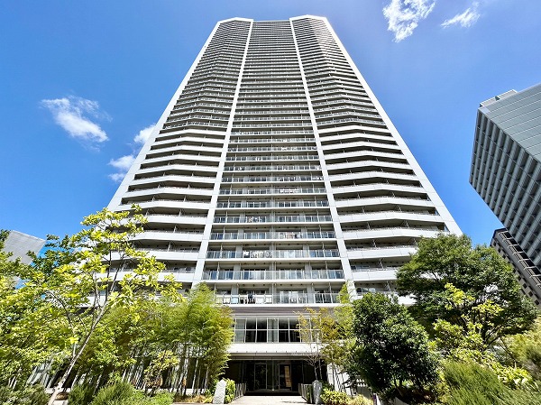 2008年にグッドデザイン賞を受賞したスマートな外観。こちらが今回ご紹介する『キャピタルマークタワー』です。地下1階付地上47階建て総戸数869戸のオール電化タワーマンション。免震構造なので地震に強く、安心してお住まいいただけます。長期修繕計画があるのもポイント。