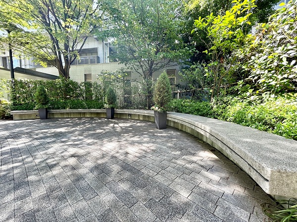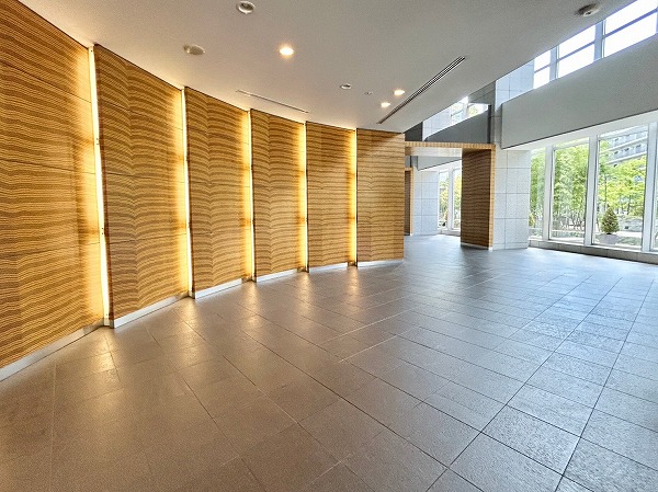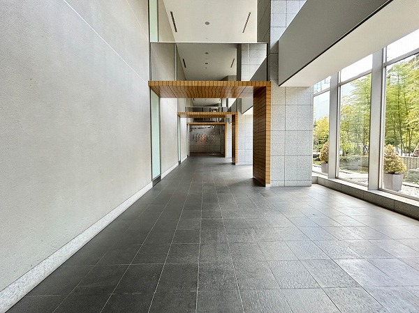 ガーデンに囲まれたマンションには複数のエントランスがあります。こちらのグランドエントランスは、上品な音楽が流れ、まるで美術館のよう。コンシェルジュサービスが受けられる他、24時間有人管理でセキュリティは万全ですね。
