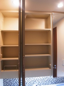 トイレの隣は両開き扉の収納スペースになっています。高さを変えれば掃除機など大きい物も仕舞うことが出来そうです。
