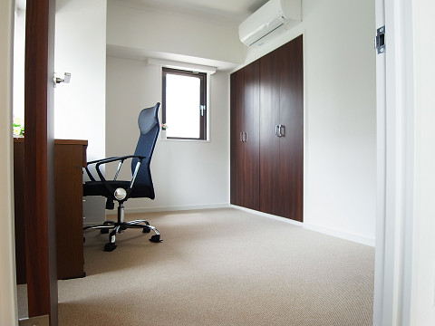 リビング隣には約5帖の洋室があります。こちらは2面採光でどちらの窓も高い場所にあるので、沢山の陽が射し込む明るいお部屋です。
