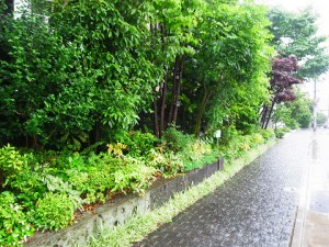 高台の閑静な住宅街に佇むこちらの低層マンションが『グランドメゾン中目黒THE CLASS』になります。みどりの量の確保や、質の高い緑化の推進を図ることを目的として設けられた「目黒区みどりのまちなみ賞」を受賞しました。
