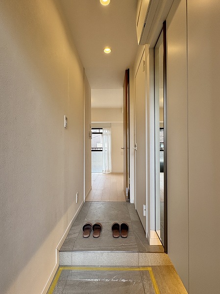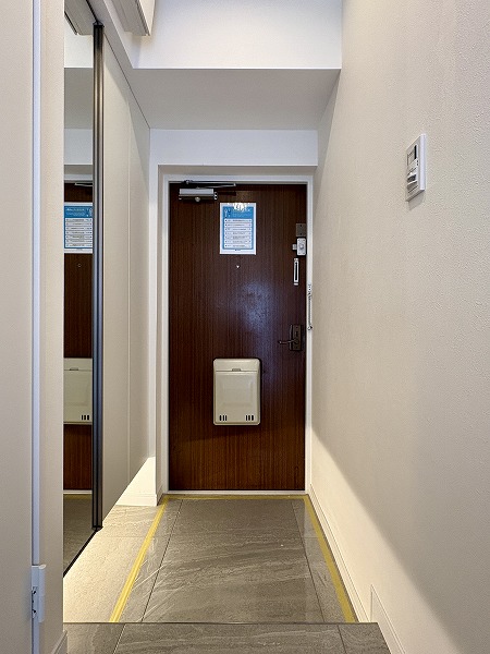 エントランスホールも外観と同じタイルが使われていて明るい印象。宅配ボックスも設置されていて便利です。カードキーなしでは入ることができないオートロックと管理人さんが常駐してくれる安心のセキュリティ。