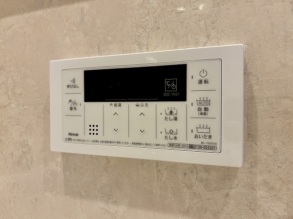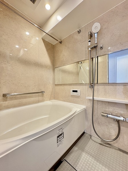 バスルームには快適なご入浴に欠かせない追い焚き機能&浴室乾燥機を搭載。横長の鏡は空間に奥行きをもたらしてくれていますね。1216サイズのバスタブでは、足を延ばしておくつろぎください♡